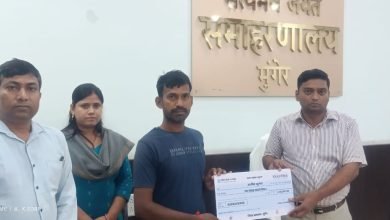 मुंगेर में तालाब में डूबने से मृत हुए चार बच्चों के परिजनों को मिले चार चार लाख के चेक