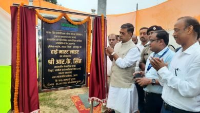 केंद्रीय उर्जा मंत्री आर.के.सिंह ने पुलिस लाईन क्षेत्र में हाई मास्ट लाइट का किया उदघाटन