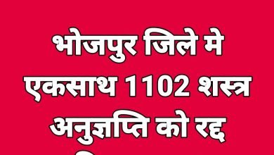 भोजपुर (आरा)। भोजपुर के डीएम राज कुमार ने आज अचानक 1102 शस्त्र अनुज्ञप्तियों ( शस्त्र लाइसेंस ) को रद्द कर…